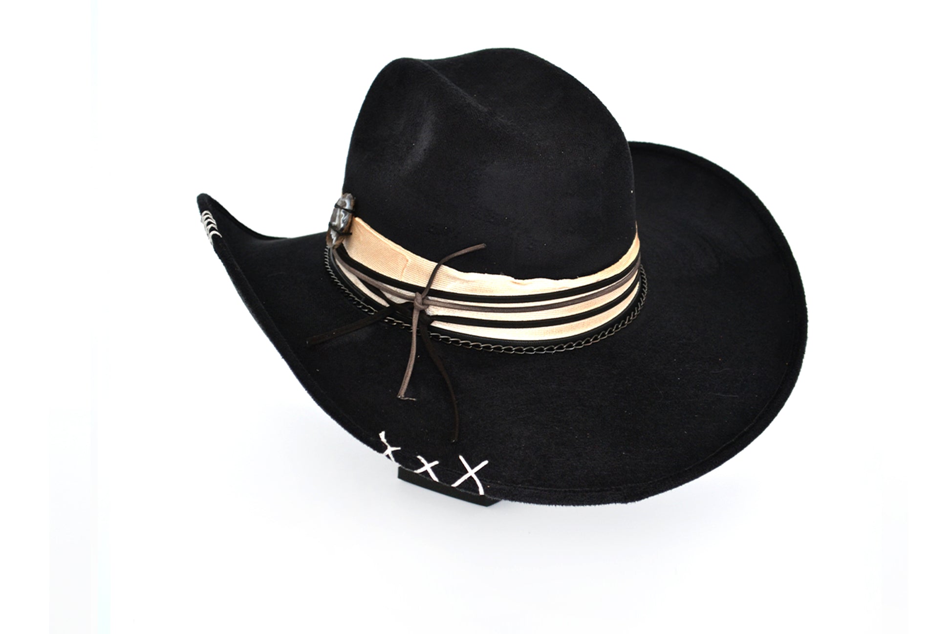Sombrero de gamuza textil hecho a mano con detalles únicos.