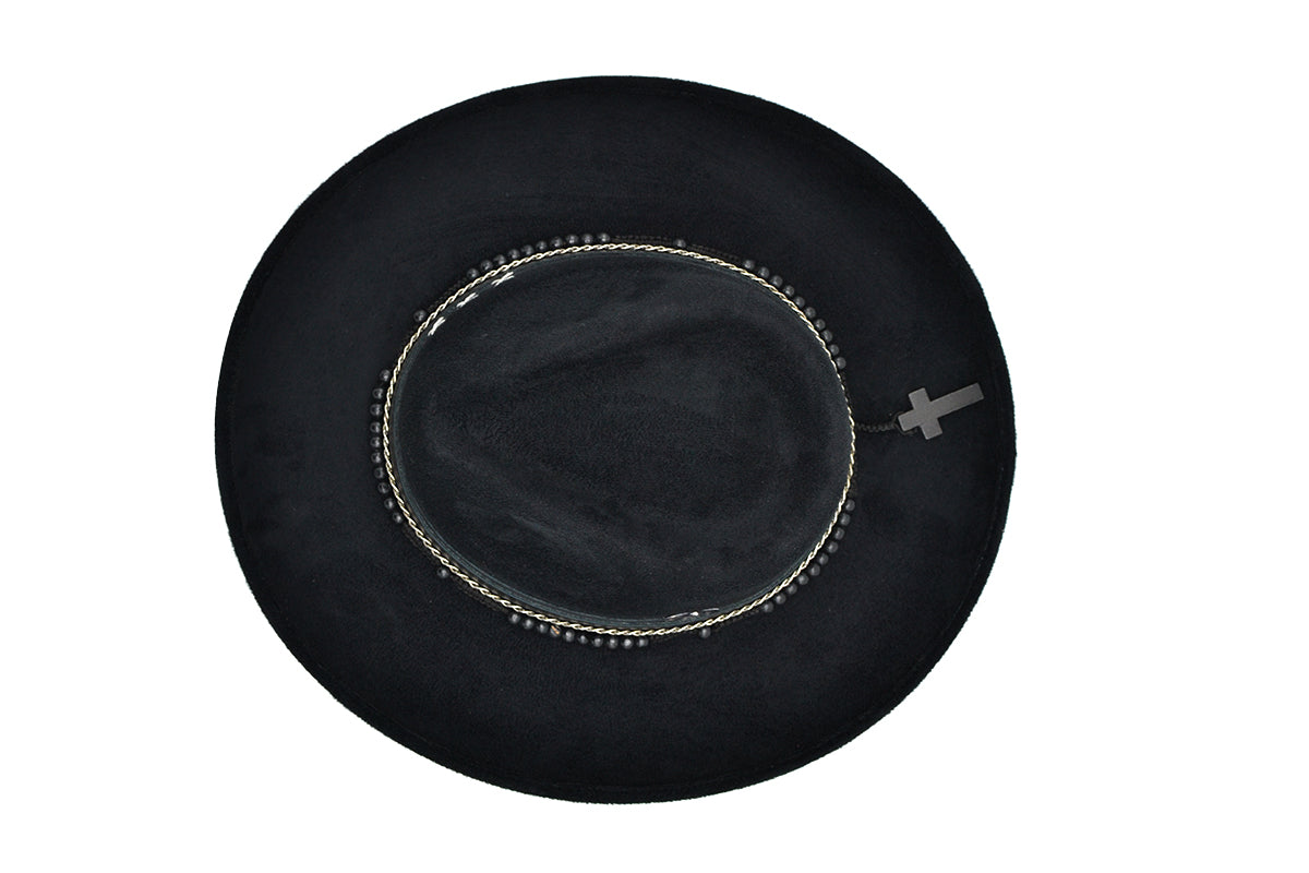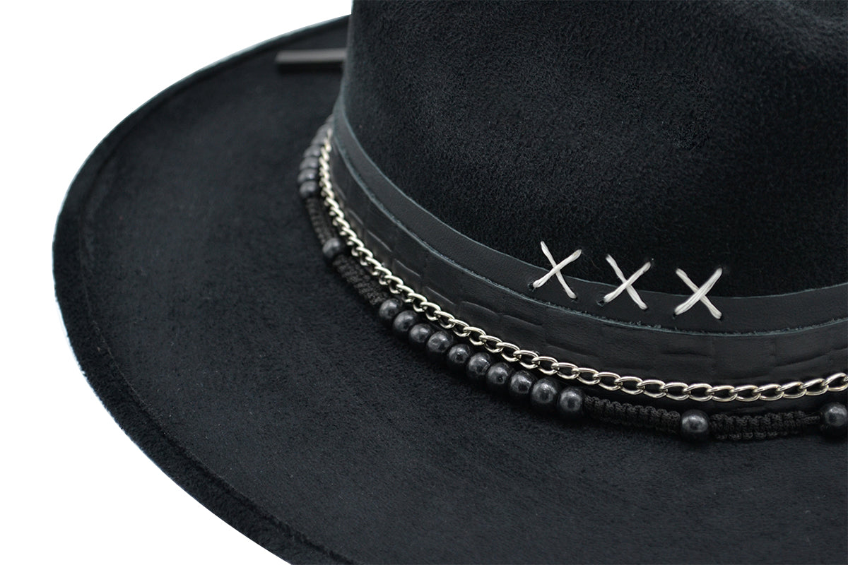 Sombrero de gamuza textil hecho a mano con detalles únicos.