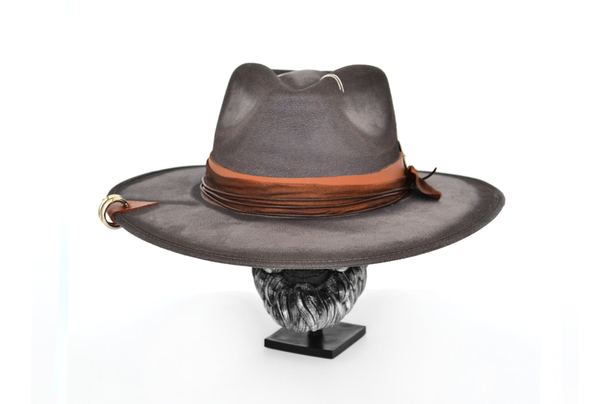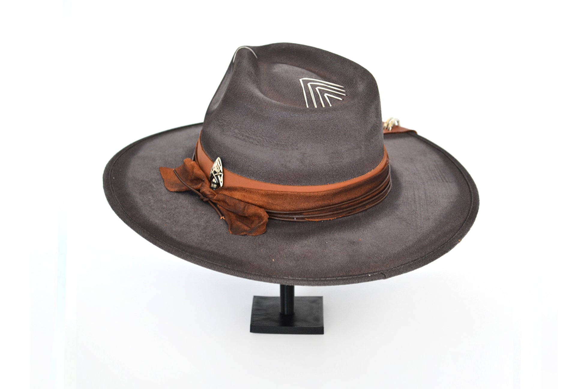 Sombrero de gamuza textil hecho a mano con detalles únicos.