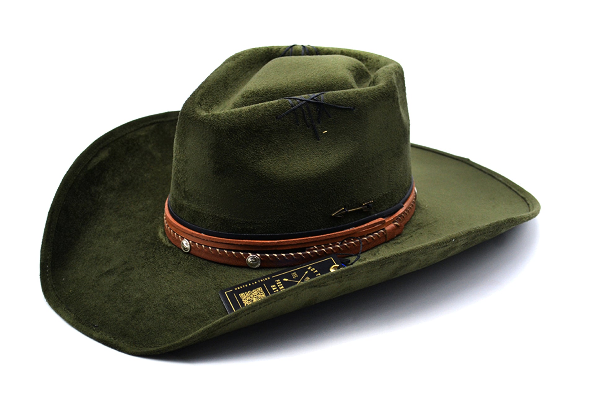 Sombrero de gamuza textil hecho a mano con detalles únicos.
